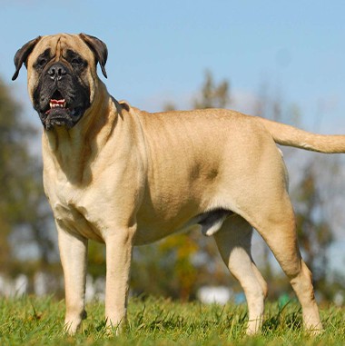 The colossal Mastiff belongs to a canine clan as ancient as civilization itself. A massive, heavy-boned dog of courage and prodigious strength, the Mastiff is docile and dignified but also a formidable protector of those they hold dear. For the uninitiated, a face-to-face encounter with these black-masked giants can be startling. A male stands at least 30 inches at the shoulder and can outweigh many a full-grown man. The rectangular body is deep and thickly muscled, covered by a short double coat of fawn, apricot, or brindle stripes. The head is broad and massive, and a wrinkled forehead accentuates an alert, kindly expression. Mastiffs are patient, lovable companions and guardians who take best to gentle training. Eternally loyal Mastiffs are protective of family, and a natural wariness of strangers makes early training and socialization essential. Mastiffs are magnificent pets, but acquiring a powerful giant-breed dog is commitment not to be taken lightly.